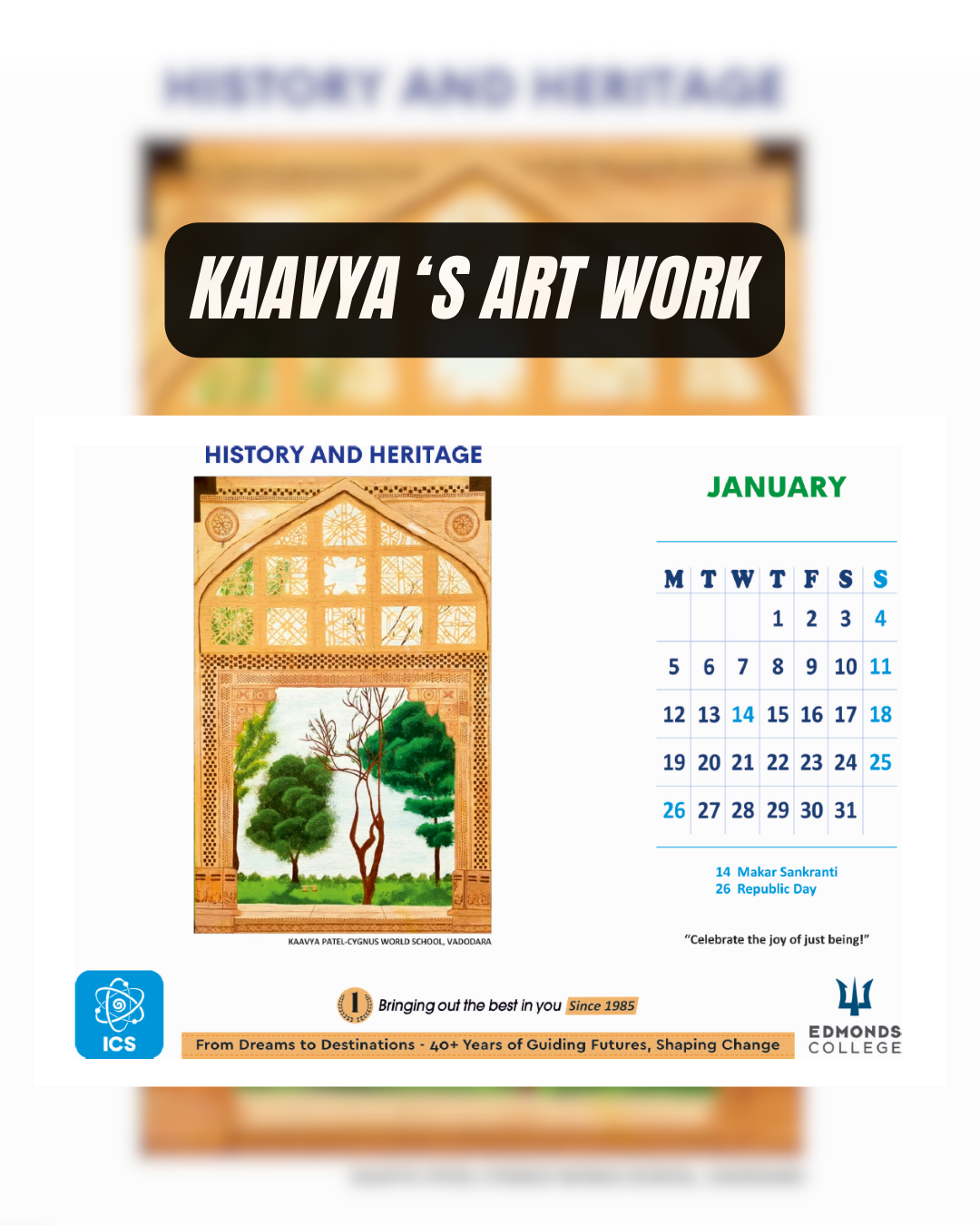 Out of 530 paintings from 130 schools across India, Bangladesh, and the Middle East, Kaavya’s interpretation of "History and Heritage" was selected to feature in the ICS 2026 Calendar.